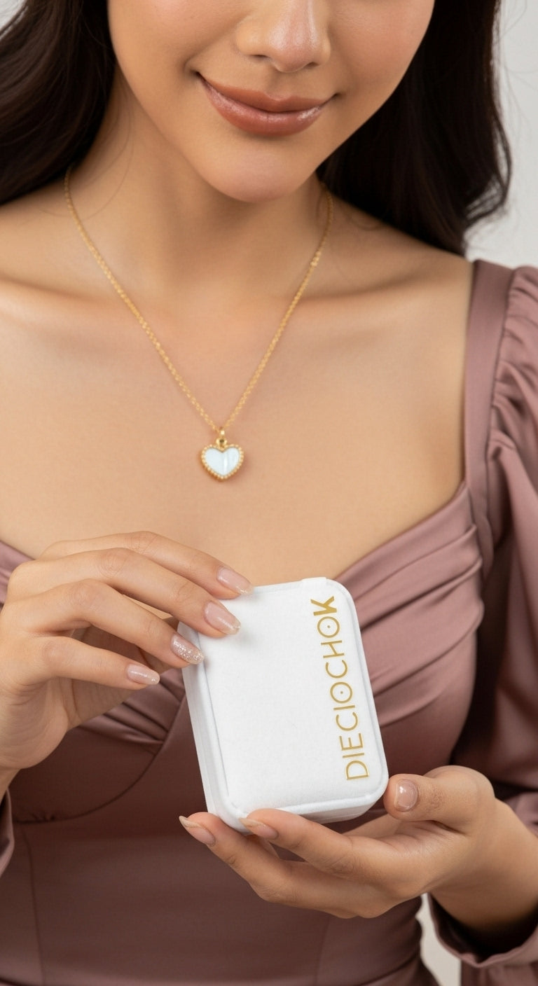 Nuestras cadenas están hechas en oro laminado 18K, con materiales antialérgicos, y con garantía de por vida por cambio de tono. Porque creemos que lo que brilla contigo… debe durar.