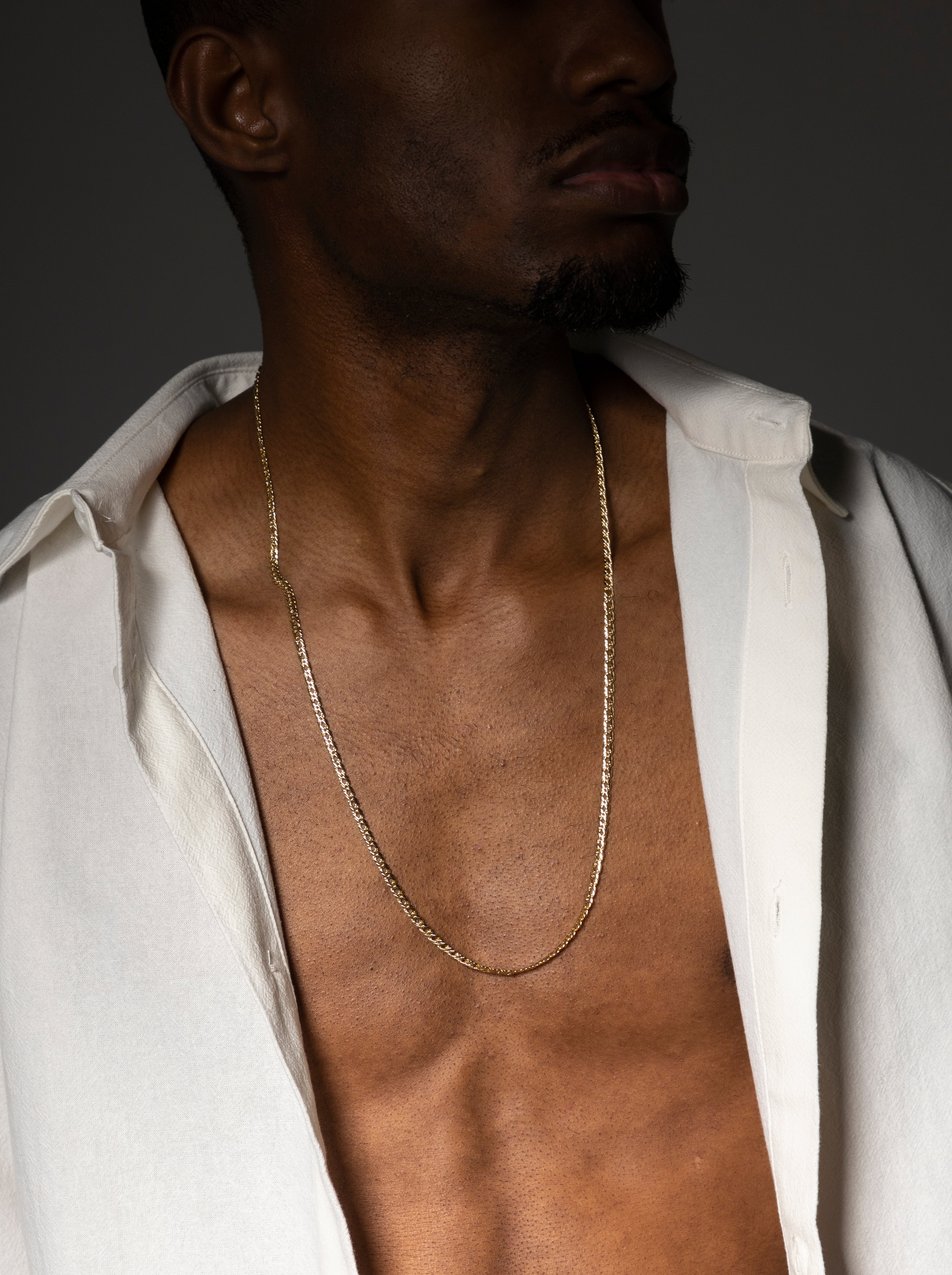 La Entrelazada de 4 mm traza una línea de brillo sutil sobre el pecho, gracias a su tejido firme pero...