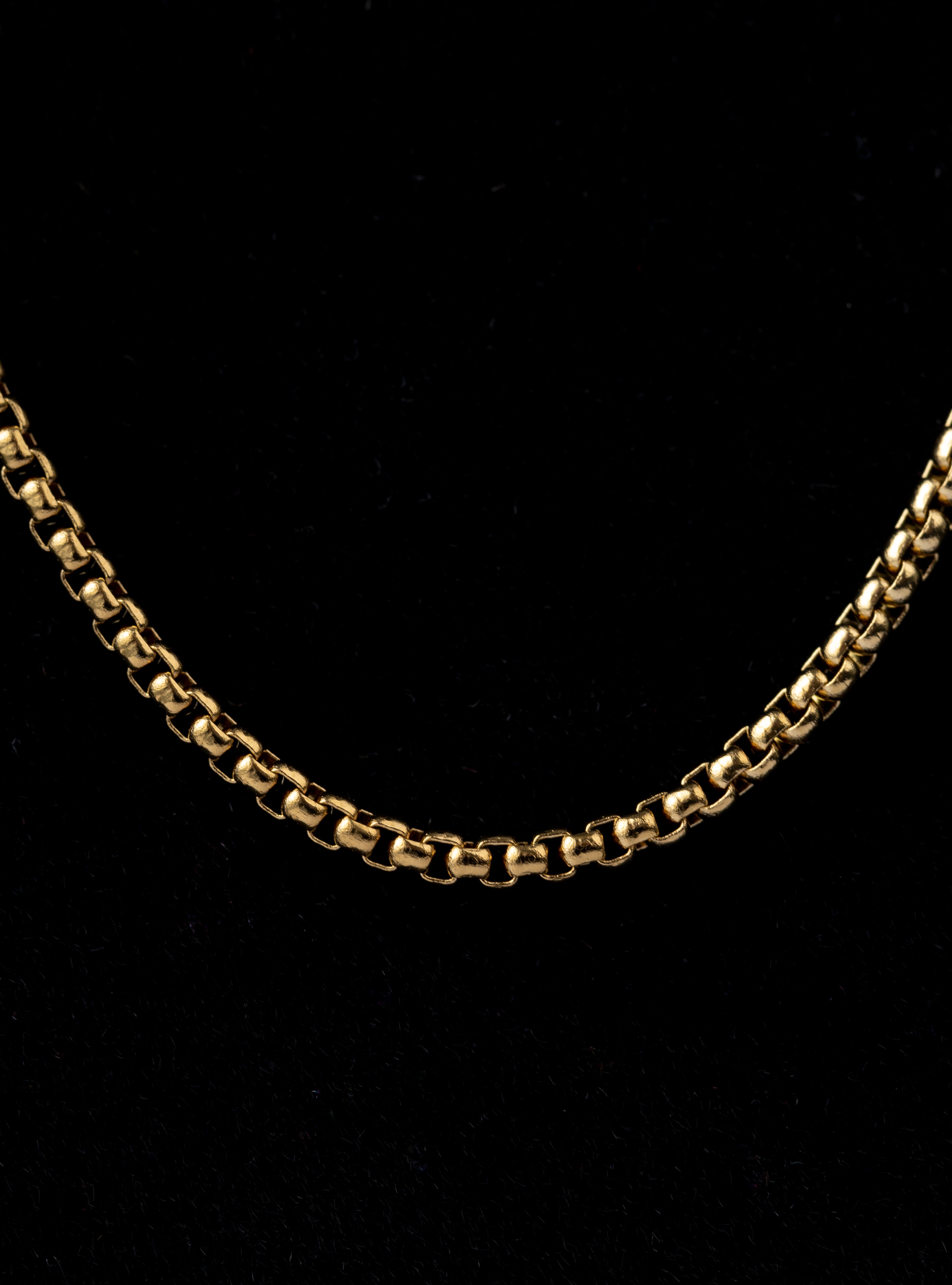 Nuestras cadenas están hechas en oro laminado 18K, con materiales antialérgicos, y con garantía de por vida por cambio de tono. Porque creemos que lo que brilla contigo… debe durar.