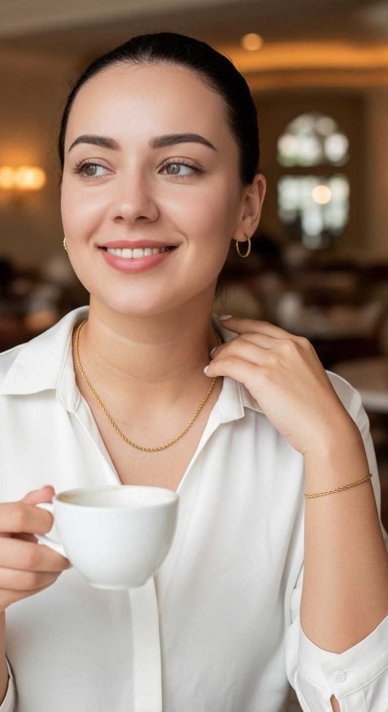 Nuestras cadenas están hechas en oro laminado 18K, con materiales antialérgicos, y con garantía de por vida por cambio de tono. Porque creemos que lo que brilla contigo… debe durar.