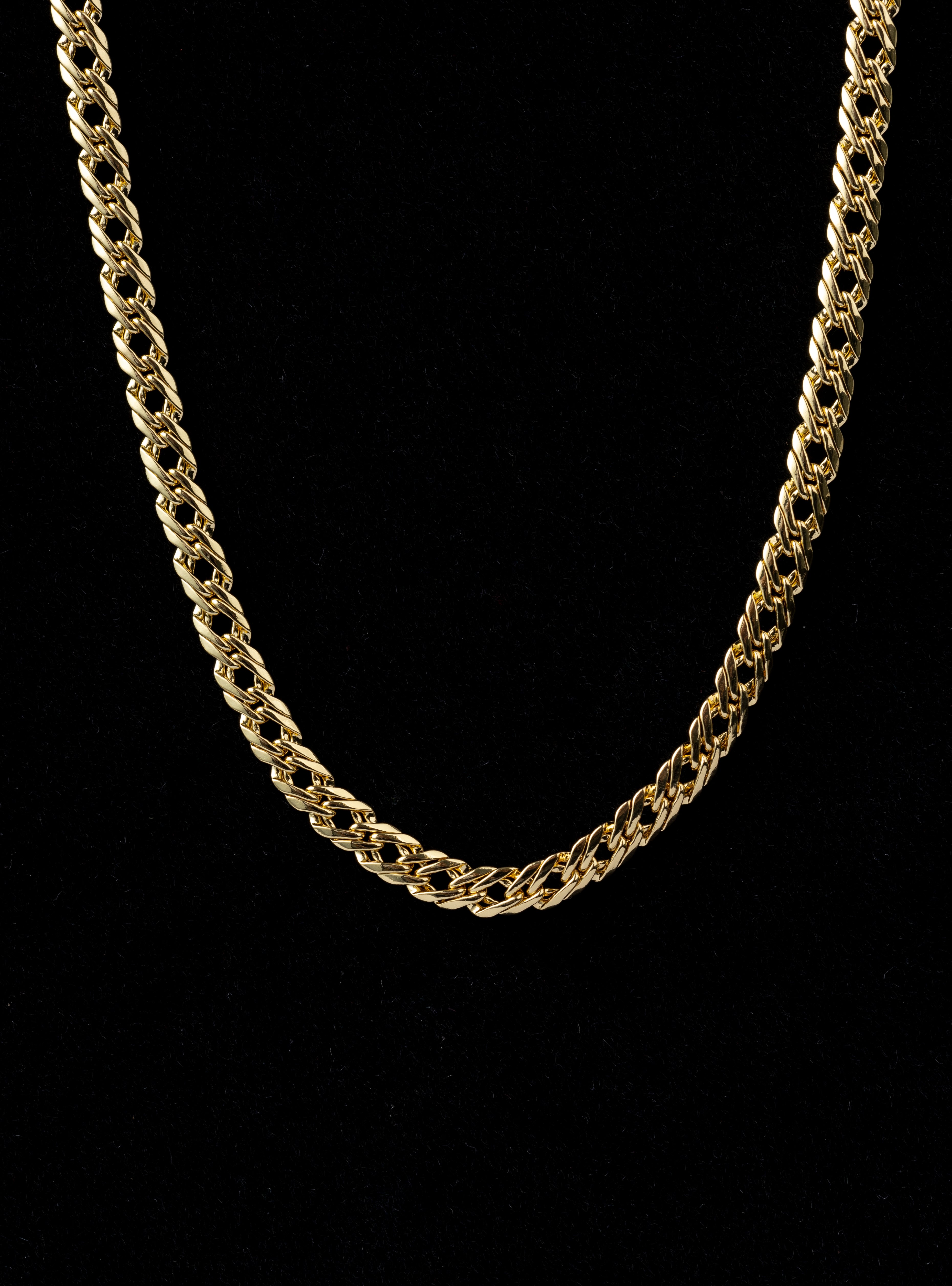 Nuestras cadenas están hechas en oro laminado 18K, con materiales antialérgicos, y con garantía de por vida por cambio de tono. Porque creemos que lo que brilla contigo… debe durar.