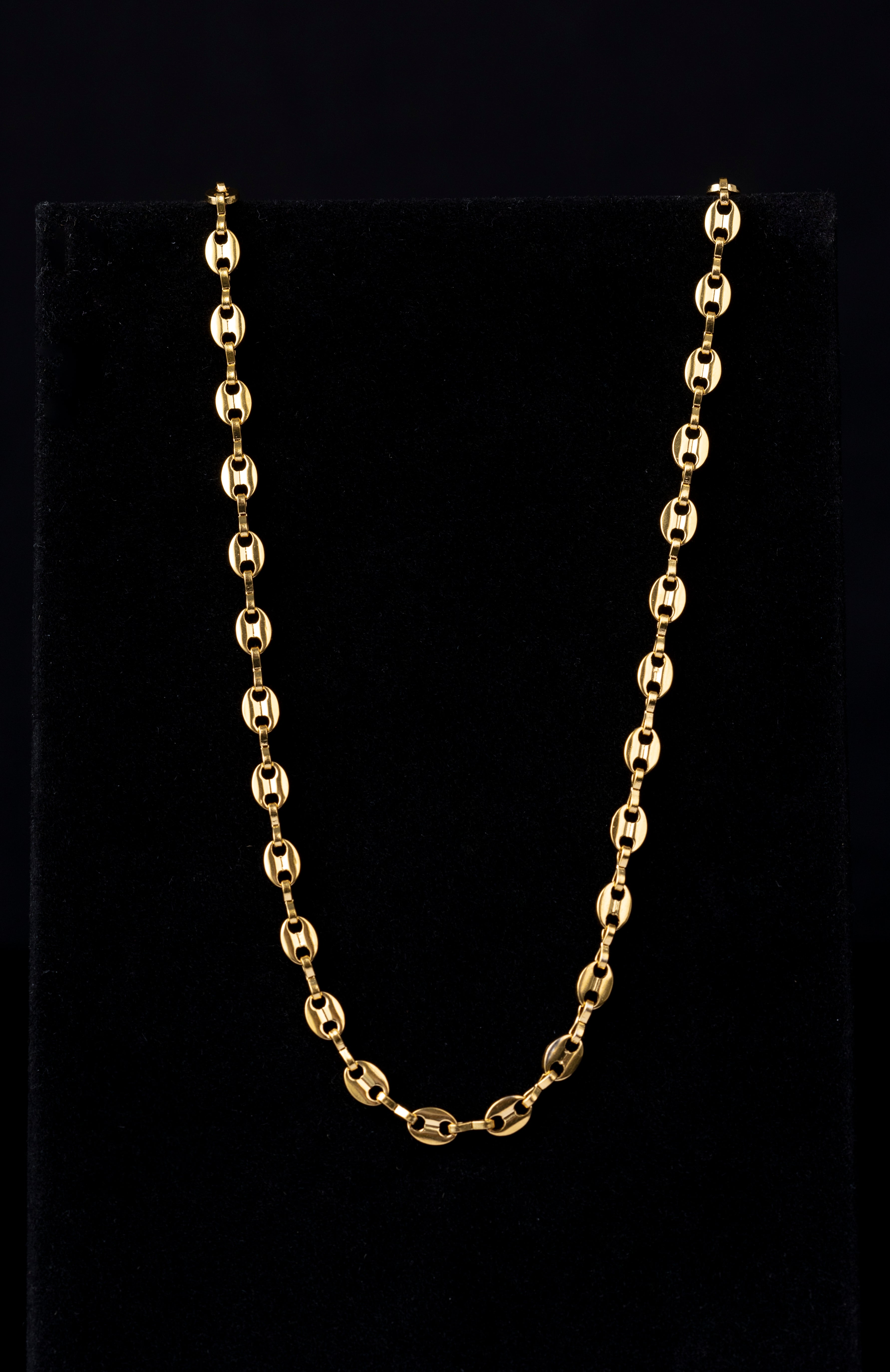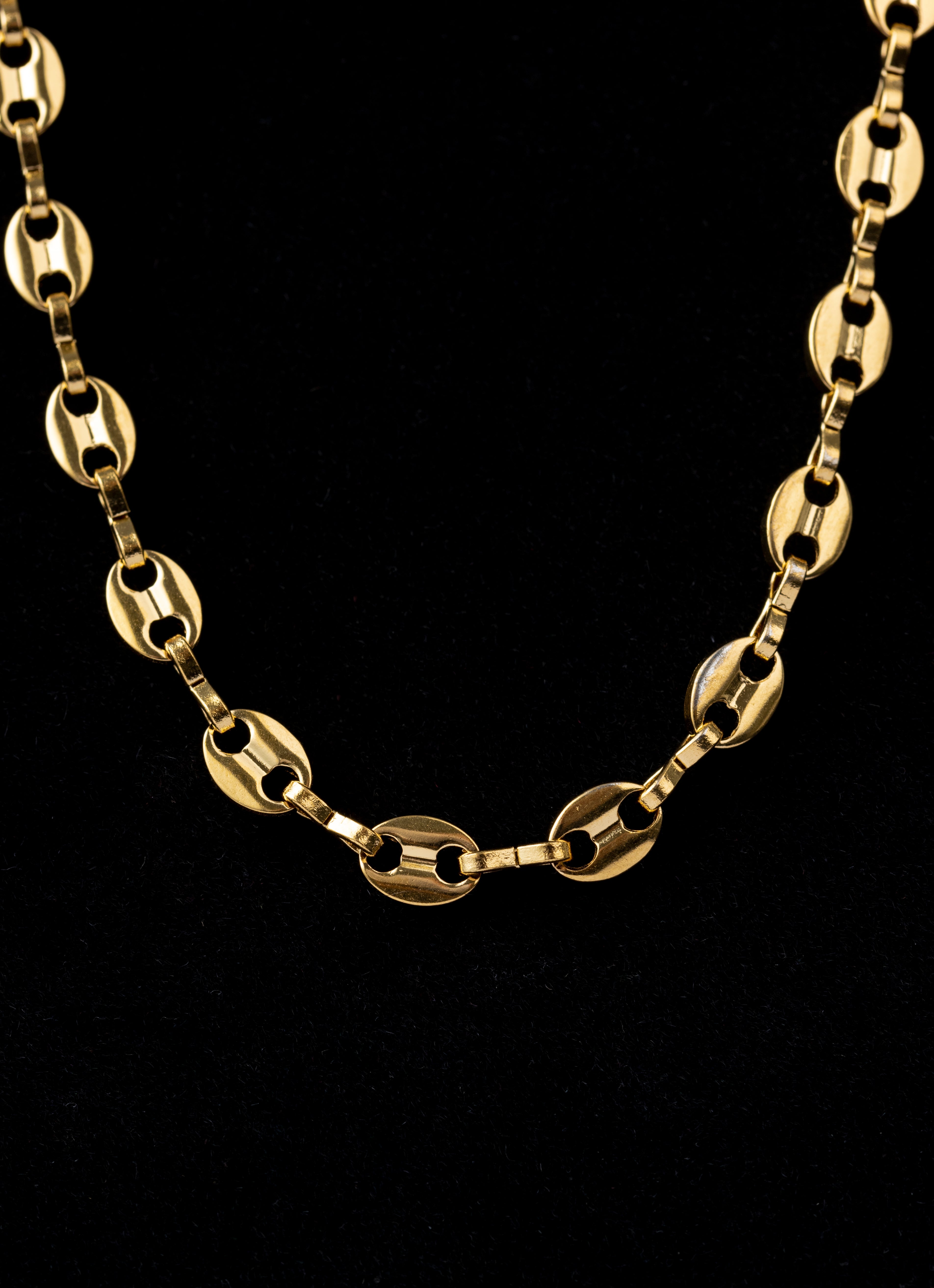 Nuestras cadenas están hechas en oro laminado 18K, con materiales antialérgicos, y con garantía de por vida por cambio de tono. Porque creemos que lo que brilla contigo… debe durar.